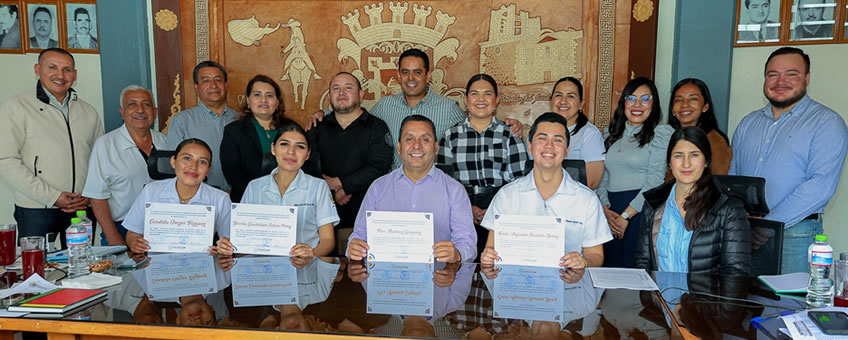 El día de hoy, el presidente municipal, Dr. Pepe Quezada, realizó la entrega de reconocimientos a las y los estudiantes de enfermería que concluyeron satisfactoriamente su servicio social en la Dirección de Protección Civil.
