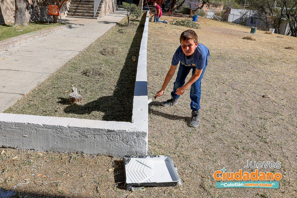 Arrancamos las actividades del #JuevesCiudadano en la Escuela Primaria Solidaridad, donde se realizaron labores de retiro de maleza, mantenimiento de áreas verdes, pintura en espacios comunes y limpieza general de la institución.