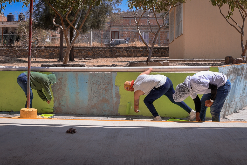Durante la jornada realizamos corte de pasto, limpieza de áreas del plantel, pintura y mantenimiento de distintos espacios, acciones que ayudan a que la comunidad educativa cuente con un entorno más limpio, seguro y agradable para el aprendizaje.